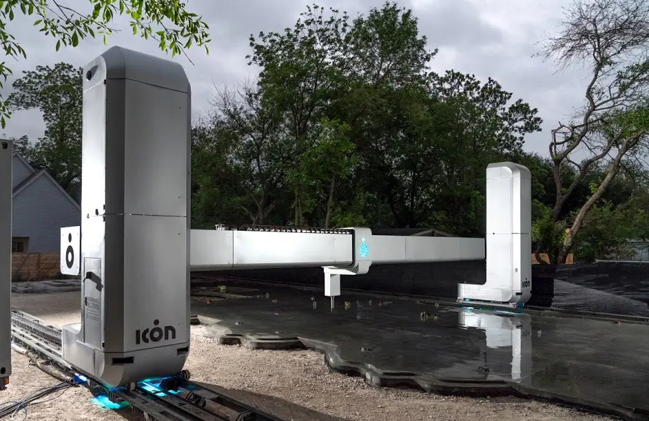 ICON’s gantry system, known as the Vulcan, can print structures up to 3,000 square feet.